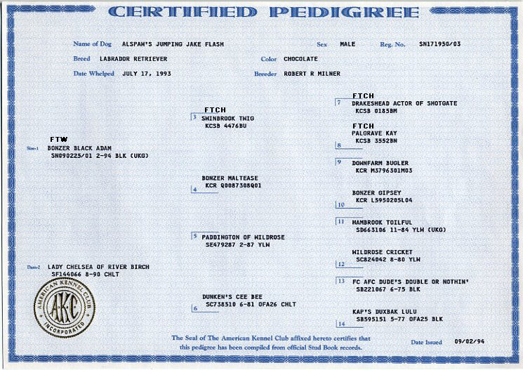 the AKC. He was a beautiful dark chocolate. He had excellent conformation