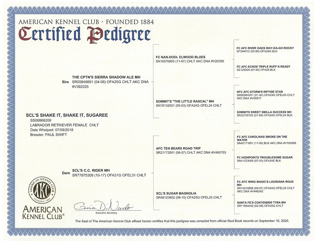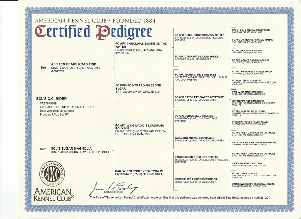 GMPR SCL's CC Rider MH Pedigree Mountain's Top Woody Sage MH QA2 Pedigree
